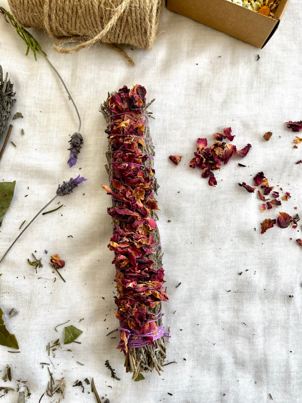 Este atado de aproximadamente 20cm es perfecto para rituales de limpieza energética, meditaciones o para mejorar la energía de tu hogar. Hecho de manera artesanal y con ingredientes naturales, cada atado es único, reflejando la belleza y frescura de la naturaleza en cada estación
